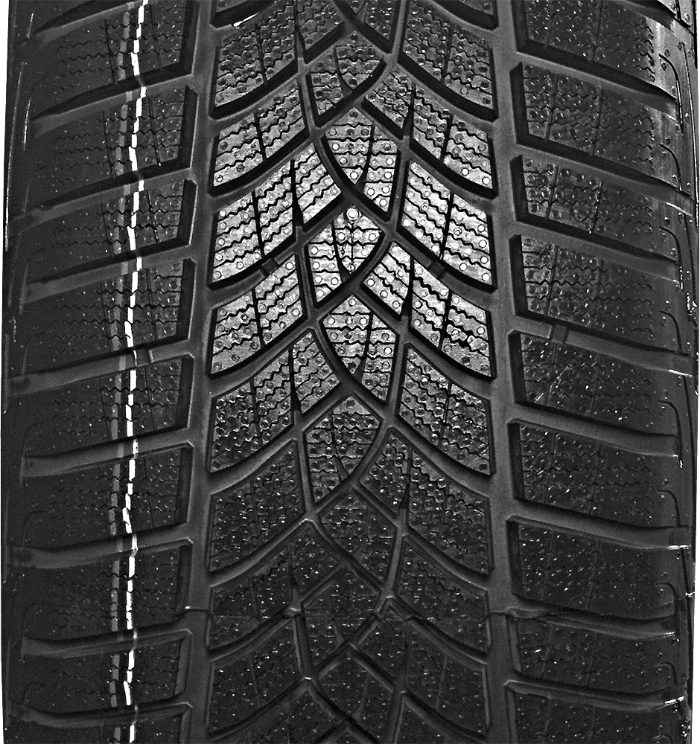 - des fentes supplémentaires de la bande de roulement qui garantissent une très bonne adhérence et distance de freinage réduite sur les routes enneigées et verglacées;